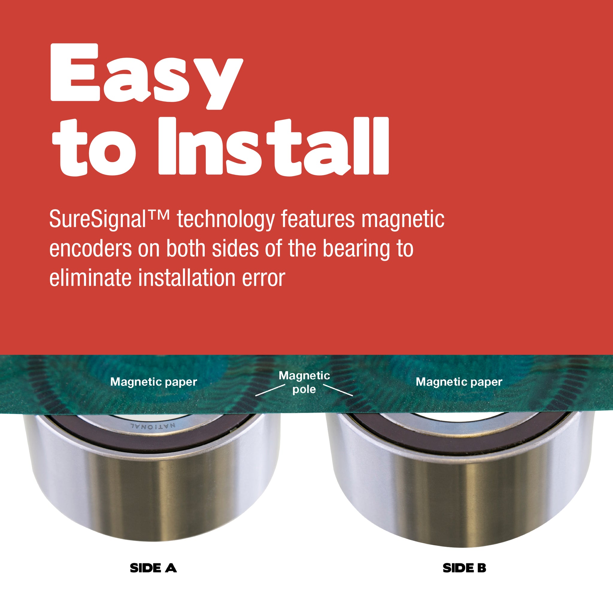 EASY TO INSTALL -- SureSignal™ technology features magnetic encoders on both sides of the bearing to eliminate installation error